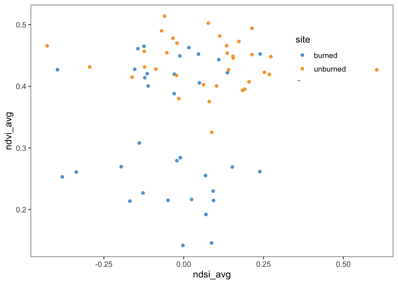 Burnedgraph <- ggplot(combined_burned, aes(x=ndsi_burned_avg, y=ndvi_burned_avg)) +