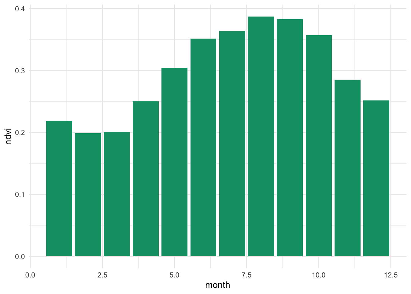 ggplot(ndvigreenest, aes(x=month, y=ndvi)) +